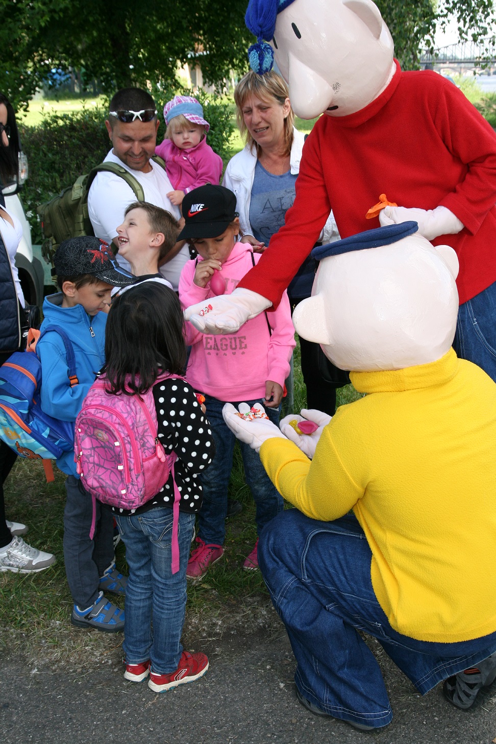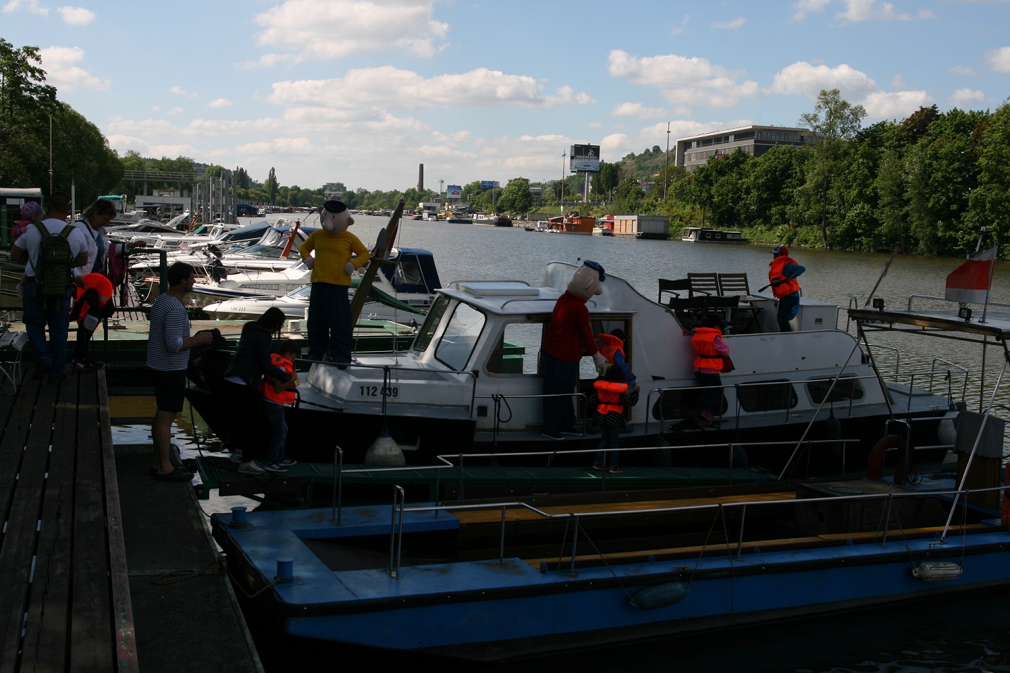 Děti, které tentokrát dorazily z Klokánku v Ústí nad Labem, neměly do poslední chvíle tušení, že se se známými postavičkami setkají, a tak na Císařské louce v dopoledních hodinách praskl pytel radosti a všem se opět úsměvy natahovali od ucha k uchu. Po prvních dojmech si celou skupinu převzal kapitán lodi Honza Hanzl z AZ Yacht s.r.o. a dětem vysvětlil, jak se správný námořníci musí na lodi chovat. Mezitím, co si malí námořníci oblékali záchranné vesty, Pat s Matem prozkoumávali loď a protože měli zákaz hrabat se v motoru, vyzkoušeli si alespoň známou scénu z Titanicu. Po nalodění všech pasažérů, kapitán Honza nastartoval a mohlo se vyplout.