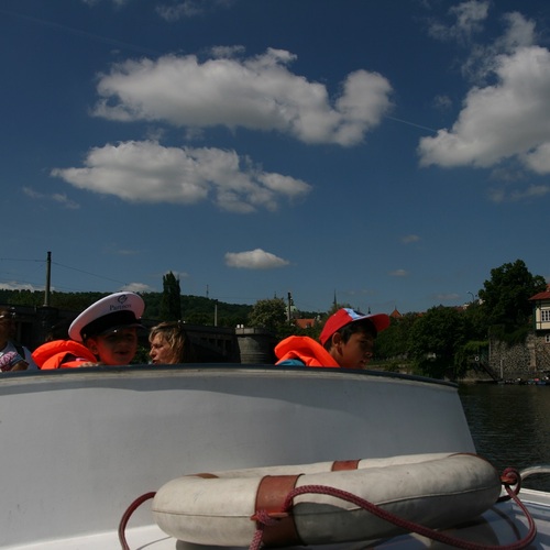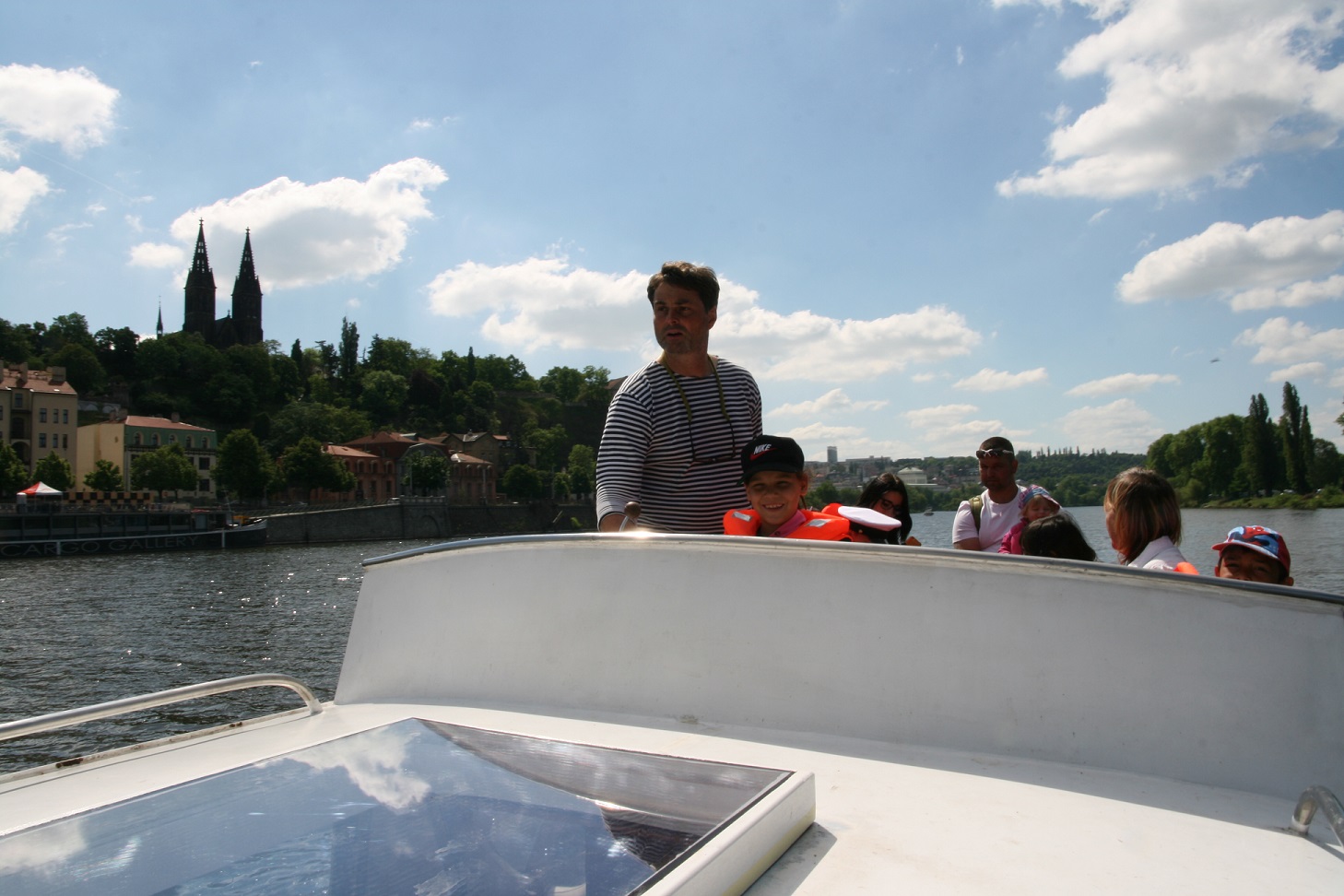 Počasí přálo, proto si děti mohly také zkusit loď, ovšem pod dohledem zkušeného kapitána, kormidlovat. A to samozřejmě bylo nad všechny ty památky kolem.